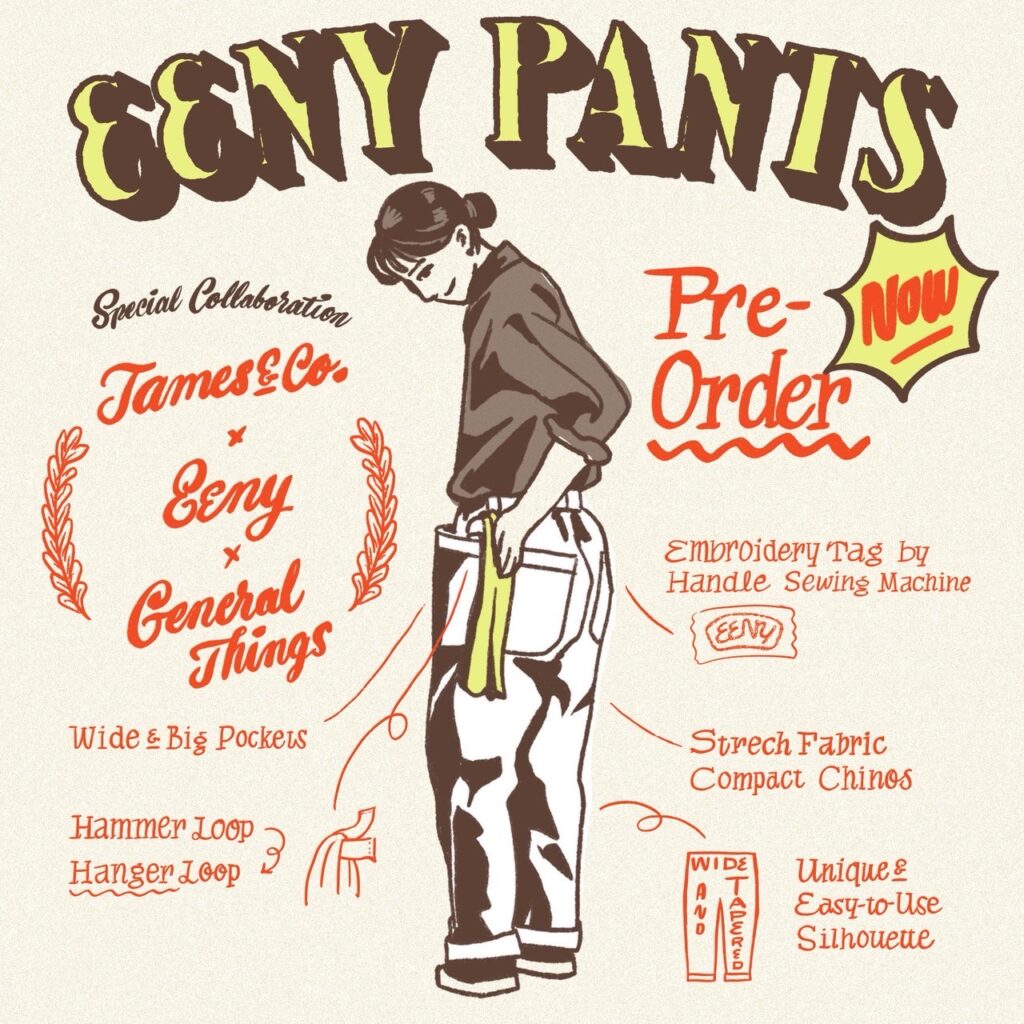 さらに、EENY x JAMES x GENERAL THINGSの3者コラボによるスペシャルパンツの試着オーダー会も行っております。