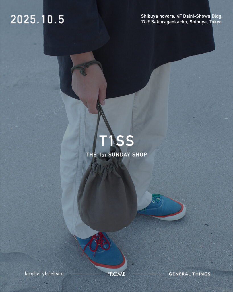 T1SSはバッグやオブジェ、アパレルを制作する3つのブランドが、毎月第1日曜日に渋谷の古ビルで開催しているショップ(展示販売会)です。